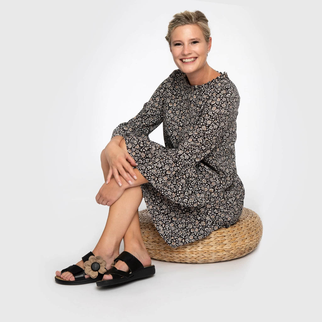 Der passende Schuh bei einem Hallux valgus. Mit Hilfe der individuell einstellbaren Großzehschlaufe wird die Fehlstellung des Hallux valgus sanft korrigiert. Die elegante und legere Pantolette AllGo ist aus hochwertigen schwarzen Glattleder gefertigt. Die bequeme AllGo Pantolette kann elegant, leger und in vielen Arbeitsbereichen optimal getragen werden.