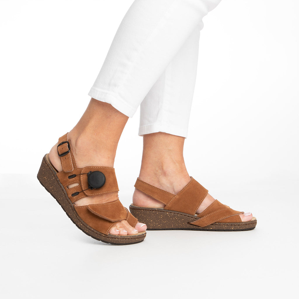 GinkGo ist eine elegante Absatz - Veloursledersandale, in attraktivem Braun die den Hallux valgus beim Tragen korrigiert. Zwei robuste Klettverschlüsse garantieren eine optimale Passform. Hochwertiges Leder und rutschfeste Laufsohlen bieten einen einwandfreien Tragekomfort.